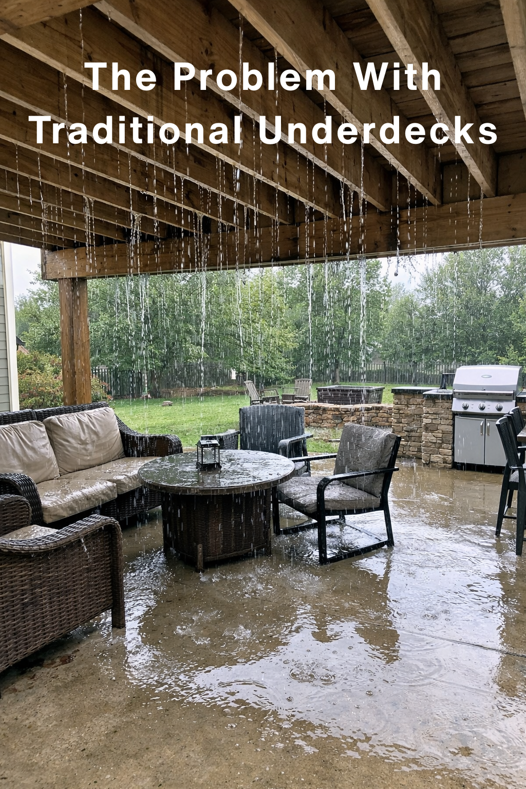 Most elevated decks leave the space underneath exposed to rain, snow, and dripping water.